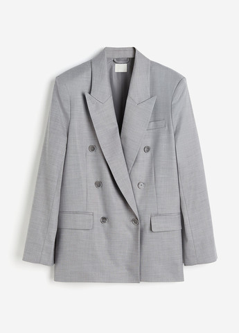 Серое пальто-блейзер — новинка от SHEIN. Оно имеет свободный крой и стандартный дизайн рукава, включает детали на пуговицах и карманах. Ткань не тянется. Имеет стандартный подол и вырез с лацканами. Двубортный фасон с карманами.