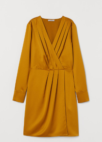 Короткое платье из блестящего атласа. Треугольный вырез горловины и пришитый запах, а также заложенные спереди складки. Отрезная талия с резинкой на спине. Длинные рукава с манжетами на застежке. Лиф на подкладке.***Размер - 36Длина руква - 61,00 смДлина изделия - 95,00 смШирина по плечам - 39,00 смОбъем груди - 96,00 смВозможно повреждение бирки