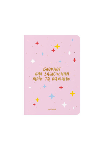 Блокнот в точку «Для воплощения мечт и желаний» розовый Размер: А5 (148х210 см) Обложка: белый мелованный картон Ламинация: матовая Внутри: точка Количество страниц: 144 Бумага — 100 г Материал тиснения: золотая фольга