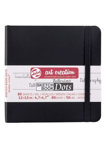 Блокноты в точку Talens Art Creation - отличный выбор для сохранения аккуратности букв или надписей, или для создания цветного планировщика или полезных записей. Имеет эластичную ленту и закладку, для удобства в пользовании. - 80 листов плотностью 80г/м2, цвет бумаги - слоновая кость - Твердая, приятная на осязание обложка - Пунктирная сетка