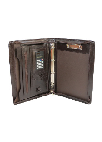 Два открытых отделения для документов формата А4. Один карман на молнии. Две петли для ручек. Три кармана для визиток. Сегрегатор для документов формата А4. Крепление на пружине для фиксации блокнота или документов формата А4. Калькулятор. Характеристики: Размеры: 35х26х4,5 см. Цвет: коричневый. Помещаются документы формата А4. Производитель: AMO, Польша.