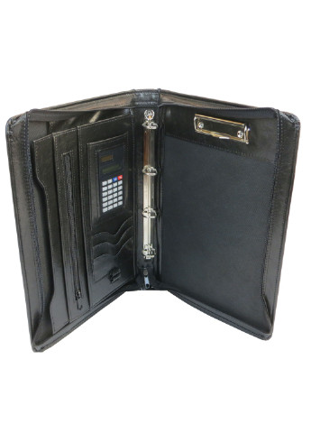 Папка выполнена из качественной искусственной кожи. Держатель на пружине для разных документов или блокнота формата A4. Сегрегатор для фиксации документов. Калькулятор. Петля для ручки. Пять кармашков для визиток или платежных карт. Отделение для документов формата А4. Ручка из искусственной кожи для переноски в руке. Характеристики: Размеры: 37,5 х 26,5 х 4,5 см. Помещаются документы формата А4. Цвет: черный. Производитель: JPB Польша.