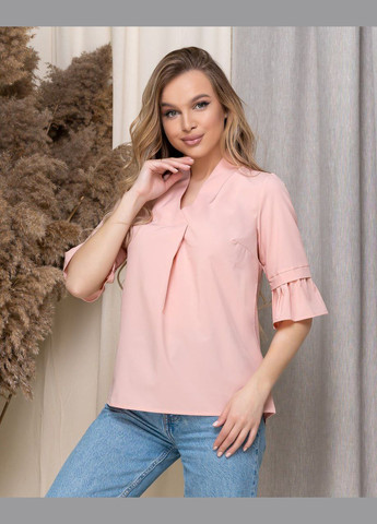 Блуза Материал: турецкий софт Размеры: 42, 44, 46, 48 50, 52, 54, 56 Цвета: белый, голубой, желтый, синий, трава, пудра Эта блуза выполнена из ткани софт — мягкой, легкой и приятной на ощупь. Она имеет лаконичный, но в то же время изящный дизайн, подчеркивающий женственность и элегантность. Детали фасона: Воротник-стойка с V-образным вырезом придает строгость и изящество. Передняя складка обеспечивает дополнительную свободу движений и создает мягкую драпировку. Рукава ¾ украшены широкими воланами — трендовый элемент, придающий образу легкость и романтичность. Свободный крой блузы подходит для любого типа фигуры, даря комфорт в течение всего дня. Материал: Ткань софт — это микс синтетических волокон с приятной к телу фактурой. Она прекрасно держит форму, почти не мнется, имеет матовый финиш и легкий спад