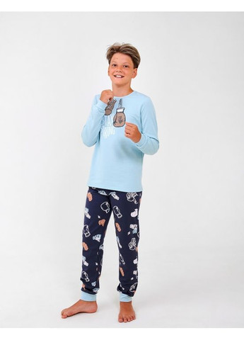 Стильная детская пижама для мальчика из футера с начёсом — тепло, комфорт и свобода движений. Мягкое полотно бережно согревает, манжеты на рукавах и штанинах фиксируют посадку, а яркий принт с боксерскими перчатками и надписями добавляет энергии и драйва маленьким чемпионам!