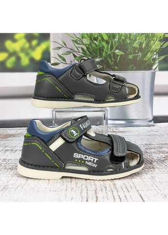 Босоножки, сандалии, для мальчика с закрытым носком и высокой пяткой. За счет высокой пятки и липучек, ножка ребенка надежно фиксируется в обуви. Верх - эко-кожа Стелька - кожа, есть супинатор. Полнота регулируется двумя липучками Для выбора своего размера, смотрите размерную сетку на данную модель: 26р. - 16,3 см 27р. - 16,8 см 28р. - 17,5 см 29р. - 18,3 см 30р. - 18,8 см 31р. - 19,5 см