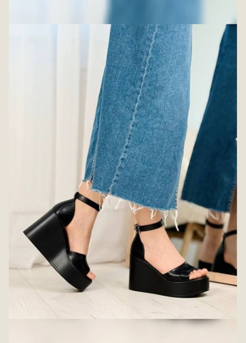 Женские босоножки черного цвета на танкетке и платформе из эко-кожи — стильная и удобная летняя обувь на каждый день. Модель с закрытой пяткой и застежкой обеспечивает комфортную посадку и хорошую фиксацию стопы. Идеально подойдут как для повседневной носки, так и для летних прогулок. Рекомендуются на узкую и среднюю стопу. Размерная сетка: 36 — 23,5 см 37 — 24,0 см 38 — 24,5 см 39 — 25,0 см 40 — 25.5 см Материалы: Верх — эко-кожа (люкс качество) Подошва — резиновая пена Цвет: черный Застежка: классическая Пятка: закрытая Высота танкетки сзади: 10 см Высота подошвы спереди: 3,5 см Босоножки очень легкие, удобные и практичные. Не натирают, не скользят, хорошо фиксируются на ноге. Платформа равномерно распределяет нагрузку на стопу, что обеспечивает комфорт даже при длительной носке. Выбирая эту модель, вы получаете сочетание стиля, удобства и качества по доступной цене.