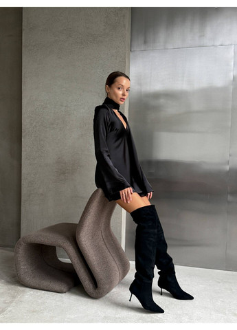 Выполненные из нежной экозамши в глубоком черном цвете, они подчеркивают форму ноги и придают стройность.