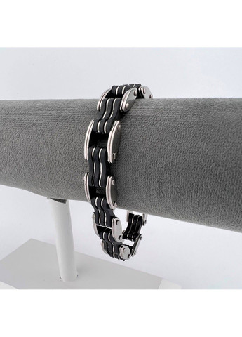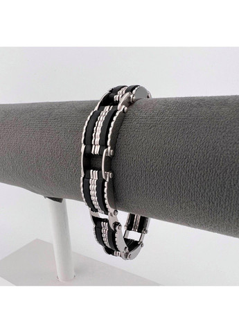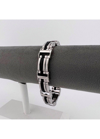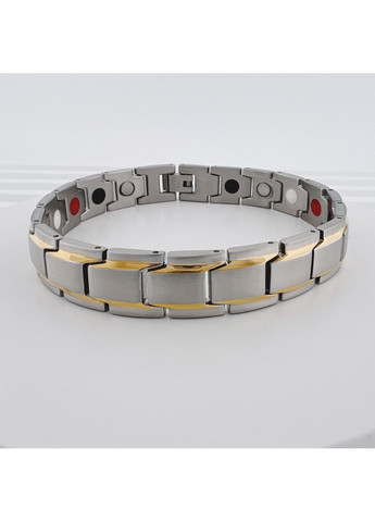 Мужской браслет из нержавеющей медицинской стали. Имеет складную застежку, покрыт черной эмалью. Украшен двумя золотистыми линиями, которые обогащают браслет и выделяют его особенность. Натуральный цвет стали - серебристый, а покрытие на этом материале держится очень хорошо. Медицинская сталь не темнеет, не окисляется и не вызывает аллергической реакции на теле. В браслете есть пластина, на которой можно нанести гравировку.