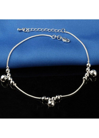 Женский браслет из ювелирного сплава на ногу. Имеет карабинную застежку, украшен декорами в виде шаров.
