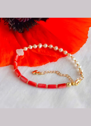 Браслет натуральный Жемчуг+вставка Перламутр клевер фур-ра гип-ный сплав цвет золото d-3,5мм+- L-18-23см
