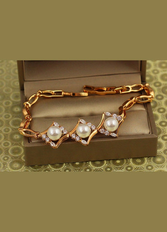 Браслет Xuping Jewelry Ромбы с жемчужиной мзолотистый длина 18 см ширина 16 мм диаметр жемчужины 8 мм