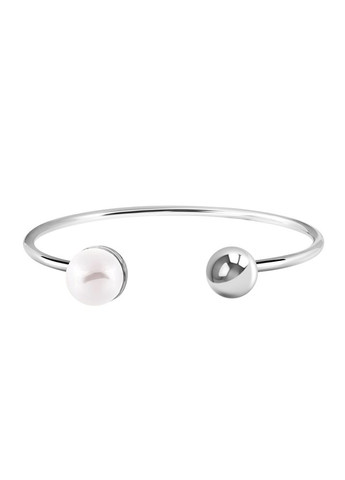 Нежный и невесомый разомкнутый браслет. Имеет гибкое основание. Торцы оформлены декоративным металлическим шариком и жемчужиной.