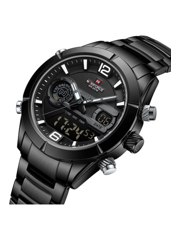 Толщина: 15,5 мм; Вес, г: 177; Фабрика cборки: Китай/Япония; Функции: Таймер, будильник, подсветка, секундомер, время показывается на циферблате и стрелками, дата, день недели, месяц, второе время (Dual Time); Диаметр: 45 мм; Индикация: Минуты, секунды, часы; Стекло: Минеральное; Особенности: Инструкция на русском языке; Вид индикации: Индексы, арабские цифры; Дополнительные характеристики: Индикация месяца; Водостойкость: 3 атм - мыть руки; Формат времени: 12/24 ч; Цвет корпуса: Черный; Механизм: Кварцевый; Стиль: Спортивный; Тип циферблата: Комбинированный (аналогово-стрелочный); Особенности циферблата: Центральная секундная стрелка; Размеры, мм: 45х15,5; Тип механизма: Quartz; Материал корпуса: Сталь; Форма корпуса: Круглый; Материал ремешка: Стальной; Ремешок/браслет: Браслет; Материал: Металл; Тип: Мужские; Цвет ремешка: Черный; Застежка: Двухуровневая; По диаметру часов: Средние; Длина ремешка: 25 см (регулируется); Для мужчин: Для мужчин; Возможность снять ремешок: Да; Гарантия: 12 месяцев; Основной цвет циферблата: Черный; Тип цифр: Индексы, арабские цифры; Задняя крышка: Закрытая; Ширина ремешка: 22 мм; Характеристики механизма: Seiko (Япония); По стране механизма: С японским механизмом; Производитель: Naviforce;