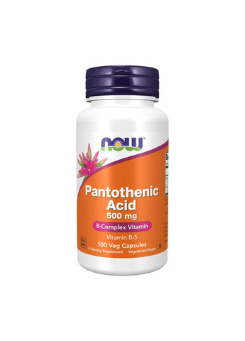 Pantothenic Acid 500 mg – источник пантотеновой кислоты от бренда NOW. Пантотеновая кислота или витамин В5 является важнейшим компонентом в процессах, протекающих в клетках организма человека, источник: proteinplus.com.ua. Витамин В5 играет важную роль в процессах биосинтеза, необходим для преобразования жиров, холестерина, гормона надпочечников. Также пантотеновая кислота нужна для медиаторов нервной системы для передачи сигналов. Витамин В5 способствует здоровому клеточному метаболизму. Функциональное действие и показания к применению Pantothenic Acid 500 mg: Здоровый клеточный метаболизм. Важный компонент в воспроизведении гормонов надпочечников, в обмене веществ, для медиаторов нервной системы. Питательная ценность в одной порции - 1 капсула: Пантотеновая кислота (витамин B-5) (из пантотената кальция) - 500 мг Кальций (из пантотената кальция) - 45 мг Другие ингредиенты: Говянский желатин (капсула) и стеарат магния (растительный источник) Способ применения: Принимать по 1 капсуле один раз в день во время приема пищи.