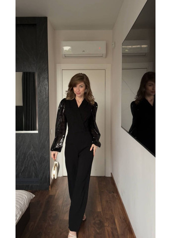 Даже на торжестве не хотите выходить из образа деловой леди? Тогда отличным вариантом для Вас станет стильный комбинезон в классическом стиле. Благодаря смелым дизайнерским экспериментам комбинезон занял свое почетное место в мире моды. Теперь это стильный козырь в гардеробе у каждой модницы. Сегодня мы презентуем Вам эксклюзивный комбинезон, выполненный из высококачественного велюра. Модель прилегающего кроя, с длинным рукавом, V-образным вырезом и боковыми накладными карманами. Комбинезон декорирован оригинальными фигурными пуговицами в два ряда, что делает образ еще ярче. Модная палитра цветов позволит создать шикарные образы для любого случая. Туфли, стильная сумочка и красивая укладка станут лучшими спутниками комбинезона.