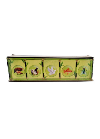 Комплект, включающий: деревянная коробка размером 29 х 8,8 х 9 см., разделенная на 5 тематических ящиков с разными видами животных: морские, домашние, дикие, насекомые, птицы. 40 плашек с реалистичными рисунками для сортировки и 4 карты 18 х 7 см для игры плашками в Лото, так можно не только сортировать, но и играть в лото. Как играть? Ребенку нужно разложить все по ассоциациям: муха – это насекомое, рябина – это птичка, а котик – это домашнее животное и т. д. Рассмотрите все фишки вместе с ребенком. Назовите животных, изображённых на фишках. Предложите кроху скрыть все фишки в домики, опуская в отверстия коробки-сортера. Игра "Лото для малышей". Возьмите одну карту и подберите фишки заранее. Рассмотрите и назовите все изображения на фишках и карточках вместе с ребенком. Вы можете разнообразить игру, сховав фишки в мешочек. Попросите ребенка вытаскивать из мешочка по одной фишке и находить такую же картинку (домик фишки) на карточке. Еще один вариант игры для малышей: выкладываете по 3 плашки с тематикой, например, дикие животные, а 4 с акулой и просите ребенка найти лишнюю плашку в этой цепочке. Игра "Лото". Рассмотрите и назовите изображение на картах. Фишки разложите на столе изображение вниз. Карты распределите между игроками (можно выбрать). Выбирается ведущий, который будет открывать по одной фишке и называть изображенную на ней картину. Игра "Две руки". Выложите перед ребенком фишки с изображениями, относящимися только к двум группам, например, насекомым и птицам. Попросите ребенка собирать и бросать фишки в коробку-сортер двумя руками (правой рукой можно собирать только насекомых, а левой – только птиц). Старшим детям можно предложить вариант игры на время. Викторина "В мире животных". Пополняйте знания ребенка интересными фактами о животных, птицах, насекомых и морских обитателях. Предложите ему сыграть в викторину, в которой вы будете задавать вопросы, а ребенок – давать на них ответы. Тип: Обучающая игра Цвет: Разные цвета Возрастная группа: От 2 лет Упаковка: Без упаковки Вид: Дошкольные Состояние: Новое Длина: 8 Габариты ширина: 23 Материал: Дерево Габариты высота: 9 Гарантия: 14 дней Страна-производитель товара: Украина Пол: Унисекс Бренд: Ubumblebees Страна регистрации бренда: Украина Возраст: От 2-х лет Страна регистрации бренда: Украина; Производитель: Ubumblebees; Бренд: Ubumblebees; Страна-производитель товара: Украина; Габариты: ширина: 23; Габариты: высота: 9; Габариты: длина: 8; Вес товара: 0; Вид: Дошкольные; Возраст: От 2-х лет; Материал: Дерево; Тип: Обучающая игра; Торговая марка: Ubumblebees; Цвет: Разноцветный; Размер изделия: 9х8х23 см; Пол: Унисекс; Упаковка: Без упаковки; Возрастная группа: От 2 лет;