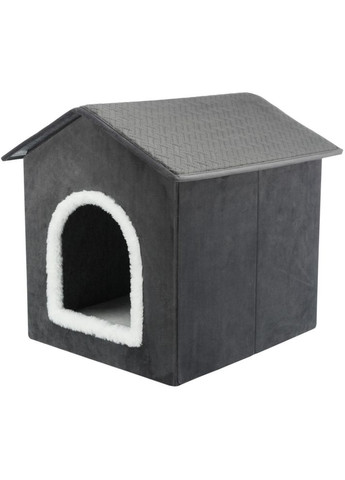 Лежанка домик со съемной подушкой для кота, собаки Особенности: Домик сохранит тепло и позволит хорошо выспаться питомцу. Описание: В комплекте идет мягкий и удобный коврик. Это лучшее спальное место для отдыха вашего питомца собаки или кошки. Размеры: 40см x 40см х 30см Цвет: Серый Материал: ткань Оксфорд и Плюш
