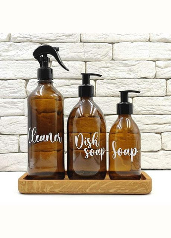 Посмотреть весь ассортимент наборов можно здесь Мы создали коллекцию элегантных дозаторов с распылителем для кухни. Большое количество разнообразных бутылок и банок может испортить даже стильный интерьер кухни. Однако благодаря набору дозаторов с распылителем с лаконичным дизайном и выразительным стилем можно эффективно устранить визуальный шум и придать особый шарм интерьеру. Эти дозаторы не только подчеркнут ваш изысканный вкус, но и будут свидетельствовать о вашей любви к деталям. Набор состоит из: диспенсера на 250 мл, диспенсера на 500 мл, распылителя на 500 мл, деревянной подставки (дуб). Размеры диспенсера: высота с дозатором 17 см, диаметр дна 6,1 см. Размеры диспенсера: высота с дозатором 20,5 см, диаметр дна 7,5 см. Размеры диспенсера: высота с распылителем 26 см, диаметр дна 7 см. Объем бутылки: 250, 500 мл. Материал: стекло. Цвет: коричневый.