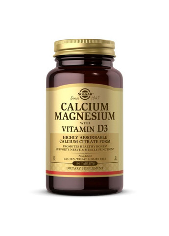 Компания основана в 1947 году Способствует здоровью костей Без ГМО Без глютена, пшеницы и молочных продуктов Халяльный продукт Отсутствие глютена подтверждено сертификатом Certified Gluten Free Сертификат кошерности Kosher Parve Диетическая добавка Кальций – это важный микроэлемент, необходимый ежедневно для хорошего здоровья. 99% кальция в организме содержится в костях и зубах. Этот микроэлемент является строительным материалом, помогающим поддерживать прочность и здоровье костей и зубов. Кроме того, кальций помогает поддерживать здоровье других систем организма, в частности, костно-мышечной и нервной систем. Это средство содержит витамин D3, способствующий усвоению кальция. Достаточное количество кальция и витамина D в составе здорового рациона вместе с физической активностью может снизить риск развития остеопороза в дальнейшей жизни. Рекомендации по применению В качестве диетической добавки для взрослых принимать по четыре (4) таблетки в день, желательно во время еды. Можно распределить в течение дня или по указанию врача.