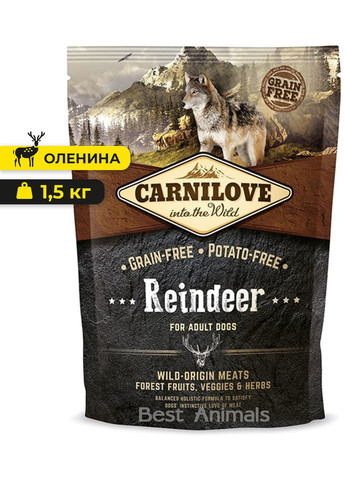 Влажный корм для собак Carnilove Dog k паштет с высоким содержанием мяса для взрослых собак. Полноценный корм для собак. Мясо северного оленя обладает уникальными свойствами. Это одно из лучших источников легкоусвояемых белков с оптимальным содержанием аминокислот. Благодаря тому, что северные олени питаются дикими ягодами, их мясо обогащено натуральными антиоксидантами и содержит небольшое количество ненасыщенных жиров. Содержание омега-3 жирных кислот в оленине равна их содержанию в рыбе. Состав: дичь (47%), северный олень (20%), черника (2%), клюква (2%), малина (2%), минералы (1%), лососевое масло (0.1%). Добавки на 1 кг: витамин D3 (Е671) 200 МЕ, цинк (Е6) 15 мг, марганец (Е5) 3 мг, йод (Е2) 0.75 мг. Аналитический состав: сырой белок 10.2%, жир 7.1%, влага 75.0%, сырая зола 4.2%, сырая клетчатка 0.4%. В качестве полноценного корма: малые и средние (1-25 кг) — 200-400 г; крупные (≥ 25 кг) — 400-800 г. В качестве дополнительного корма, 50% суточной нормы: малые и средние (1-25 кг) — 100-200 г; крупные (≥ 25 кг) — 200-400 г.