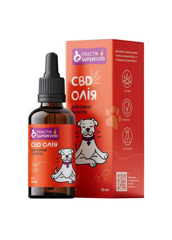 Активные компоненты масла взаимодействуют с эндоканабиноидной системой и ее рецепторами CB1 и CB2, которые, естественно, расположены в мозге, внутренних органах и клетках иммунной системы животных. Это позволяет маслу эффективно уменьшать стресс, тревожность, боль, а также облегчать состояние при хронических заболеваниях. CBD масло не является психотропным веществом, поэтому не оказывает психоактивного действия и не вызывает привыкания. Не является лекарственным средством. Преимущества масла CBD для собак и кошек Practik Superfood: Предохраняет мозг от старения, поддерживает здоровье нервных клеток и когнитивные функции, особенно в пожилом возрасте. Укрепляет иммунитет и защищает клетки от повреждений. Положительно влияет на сердечно-сосудистую систему, улучшает кровообращение. Исследования показывают, что каннабидиол может замедлять развитие некоторых видов рака. Не содержит психоактивных компонентов и не влечет за собой зависимости. Показания к применению CBD масла Practik 2%: Стресс и тревожность. Уменьшает симптомы посттравматического стресса, помогает справиться с фобиями и стрессом, вызванным разлукой или новыми местами. Послеоперационный период и травмы. Облегчает боль и дискомфорт после хирургических вмешательств, способствуя скорейшему восстановлению. Агрессивное поведение. Помогает стабилизировать эмоциональное состояние, поддерживая спокойствие и равновесие в стрессовых ситуациях. Расстройства аппетита. Восстанавливает аппетит, улучшает работу желудка и уменьшает тошноту, нормализуя пищевое поведение. Эпилепсия и судороги. Помогает снизить частоту и интенсивность судорог, улучшая самочувствие животного. Проблемы с кожей и шерстью. Уменьшает аллергии и раздражение, делает кожу здоровее, а шерсть – блестящей. Болевой синдром. Уменьшает боль и воспаление при артрите, дисплазии суставов и других хронических заболеваниях, улучшая мобильность. У нас можно купить витамины для собак и кошек, которые обеспечат им полноценное развитие, крепкий иммунитет и долголетие. Рекомендации по дозировке: CBD масло можно добавлять в пищу животного или давать непосредственно в полость рта. Рекомендуется употребление после еды для улучшения уровня усвоения вещества. Выбирайте спокойное время дня для приема, например вечер или период отдыха животного, чтобы обеспечить максимальный эффект от CBD. Избегайте контакта пипетки со слюной для предотвращения загрязнения. Первые несколько дней наблюдайте за реакцией животного, при необходимости скорректируйте дозировку или обратитесь к ветеринару. Начинайте с минимальной дозы постепенно увеличивая ее в течение 1-2 недель под контролем реакции животного. Таблица дозирования CBD для собак и животных Practik: 1 капля = 1 мг СВД Вес животного (кг) Дозировка CBD масла 2% Профилактическая доза (капли) Профилактическая доза (мг) Терапевтическая доза (капли) Терапевтическая доза (мг) 1-2 1 0,-2 1-2 0,3-1 2-5 1,5-4 5-6 1-3 0,5-1,5 3-6 2,5-6 7-8 1-4 0,7-2 4-8 3,5-8 9-10 1-5 0,9-2,5 5-12 4-5-1 6-13 5,5-12 13-14 2-7 1,3-3,5 7-14 6,5-14 15-16 2-8 1,5-4 8-16 7,5-16 17-18 2-9 1,7-4,5 9-18 8-15 10-20 9,5-20 21-30 3-12 2,1-7,5 12-30 10,5-30 31-40 4-15 3,1-10 15-40 15,5-40 41-50 5-18 4,1-15,5 51-60+ 6-20 5,1-15 20-60 25,5-60 Профилактическая доза составляет 0,1-0,25 мг CBD на 1 кг веса животного. К примеру, для собаки весом 10 кг, профилактическая доза составит 1-2,5 мг CBD, что соответствует 1-5 капли масла. Рекомендуется применять 1 раз в день утром или вечером или разделить доз