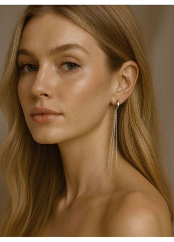 Серьги с цепочками серебряный цвет. Фурнитура класса люкс, латунь с покрытием родий. Длина 9,5 см.