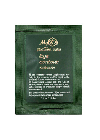Тонкая и восприимчивая кожа вокруг глаз требует особого ежедневного ухода. Контурная сыворотка бренда MyIDi предназначена для тщательного увлажнения и поддержания оптимального гидробаланса в периорбитальной зоне. Экстракт микроводоросли фукуса Shadownyl оказывает интенсивное противовоспалительное и антиоксидантное действия, стимулирует синтез коллагена, омолаживая и защищая деликатную кожу под глазами. Применение сыворотки сделает ваш взгляд свежим, отдохнувшим и сияющим! Особенности MyIDi Eye Contour Serum: - для всех типов кожи; – уменьшает проявление темных кругов под глазами; - удобный дозатор обеспечивает экономный расход; - содержит гиалуроновую кислоту, экстракт микроводоросли фукус SHADOWNYL, экстракт гриба чага, экстракт овса; - экстракт чаги комплексно усиливает действие сыворотки, помогает выводить токсины, улучшает регенерацию, снимает раздражение и выводит лишнюю влагу из клеток; - экстракт овса и гиалуроновая кислота интенсивно увлажняют кожу под глазами, разглаживают мимические и возрастные морщинки, поддерживают тонус; - подходит для подготовки к блефаропластике и постпроцедурному уходу за периорбитальной зоной; - быстро впитывается, не оставляя липкой пленки. Способ применения Наносить ежедневно утром и вечером на предварительно очищенную кожу зоны вокруг глаз.
