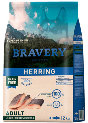 BRAVERY ADULT HERRING - Полноценный сухой корм для взрослых собак крупных и средних пород, рецепт с сельдью, беззерновой. Bravery разработана, чтобы предотвратить самые распространенные пищевые расстройства наших воспитанников, а также улучшить их здоровье и качество жизни. Bravery является результатом удовлетворения самого взыскательного вкуса, который любят наши домашние питомцы. Мы знаем, питание и здоровье вашего питомца это самое главное. Сочетая ваши стремления, предпочтения ваших питомцев и инновационные достижения, рождается Bravery , эталонный продукт с точки зрения качества в сегменте суперпремиум. Беззерновой : Потребление некоторых злаков, таких как пшеница и соя, может вызвать аллергию у домашних животных, что приводит к дерматологическим и желудочно-кишечным заболеваниям. Bravery выбирает тапиоку, поскольку она является более легкоусвояемым ингредиентом и обеспечивает максимальное усвоение углеводов. Его преимущества включают в себя запас калорий, жиров, белков и клетчатки. Единственный источник белка : Мы используем единственный источник животных белков для каждого продукта, чтобы уменьшить их аллергенность. У нас есть 5 источников животных белков: курица, баранина, иберийская свинина, лосось и сельдь. Натуральный : Различные ингредиенты продуктов Bravery были тщательно отобраны, проверены и одобрены нашей внутренней лабораторией. Это гарантирует их максимальное качество и безопасность. Натуральные антиоксиданты : Все продукты Bravery содержат высокий уровень природных антиоксидантов (токоферолы; витамины A, E и C), которые помогают поддерживать отличную иммунную систему. БЕЗ ГМО : В производстве нашей продукции мы не используем никаких генетически модифицированных ингредиентов, что способствует защите природы и ее сохранению. Состав : Обезвоженная сельдь, тапиока, жир птицы (источник Ω-6 жирных кислот), горох, дрожжи и дрожжевой экстракт Saccharomyces cerevisiae (источник маннанолигосахаридов - MOS и ß-глюканов), батат, рожковые бобы, рыбий жир (источник Ω-3-EPA и DHA жирных кислот), свекольная мякоть, картофельный белок, инулин (растворимая клетчатка цикория, источник фруктоолигосахаридов - FOS), натуральная целлюлоза (источник нерастворимой клетчатки), минералы, растворимые диетические волокна подорожника яйцевидного, эфирные масла (орегано, корица, гвоздика, тимьян, розмарин, мята, зеленый чай), гидролизат ракообразных (источник глюкозамина), гидролизат хрящей (источник хондроитина), юкка, лиофилизированный концентрат дынного сока (богатый супероксиддисмутазой - SOD). Аналитические составляющие : сырой протеин 26.00%, сырой жир 15.00%, сырая клетчатка 2.50%, сырая зола 7.90%, кальций 1.60%, фосфор 0.95%, вода 9.00%, EPA+DHA 0.56%, глюкозамина хлоргидрат 380 мг/кг, хондроитина сульфат 240 мг/кг. Пищевые добавки : витамин А 22 000 МЕ/кг, витамин D-3 1 600 МЕ/кг, витамин Е 460 мг/кг, витамин С 200 мг/кг, биотин 2 000 м кг/кг, L-карнитин 60 мг/кг, холина хлорид 1 800 мг/кг, таурин 1 200 мг/кг, железо 60 мг/кг, железо 12 мг/кг, медь 5. 5 мг/кг, медь 3.4 мг/кг, марганец 38 мг/кг, марганец 12 мг/кг, цинк 5.5 мг/кг, медь 3. 4 мг/кг, железо 60 мг/кг, железо 12 мг/кг, медь 5.5 мг/кг, медь 3.4 мг/кг, марганец 38 мг/кг, марганец 12 мг/кг, цинк (моногидратный сульфат цинка) 76 мг/кг, цинк (хелат цинка гидрата глицина) 46 мг/кг, йод (йодистый калий) 2 мг/кг, селен (селенит натрия) 0. 11 мг/кг, селен (гидрокси-аналог селенометионина) 0.11 мг/кг. Технологические добавки :