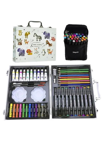 Большой набор для рисования карандаши маркеры в деревянном чемоданчике 150шт | Art Set набор юного художника Крепкий деревянный чемодан с предметами для творчества для самых маленьких и больших. Крепкий корпус с ручкой позволяет удобно транспортировать и хранить все принадлежности в одном месте. Отлично подходит в качестве подарка для молодых и перспективных художников, они будут удивлены количеством фломастеров, карандашей и других приспособлений для творчества. Набор изготовлен из экологически чистых материалов, он является абсолютно безопасным для детей. Описание: Крепкий корпус чемодана не позволит потерять или сломать комплектующие; Экономия денег при покупке одного комплекта, всё нужное оказывается сразу под рукой; Удобная ручка вверху чемодана; Крепкие застёжки, которые сдерживают чемодан от раскрытия; Большое разнообразие карандашей, мелков, фломастеров; Удобно и легко брать с собой; Ячейки набора эргономичны – группы предметов разделены на секции. Характеристики: Вид: Набор для рисования; Материал чемодана: Дерево; Материал застёжек на чемодане: Метал; Количество предметов в наборе: 150 штук; Размеры кейса: 31* см, 37.5* см Вес: 1700* г; Возрастная группа: От 3‑х лет.