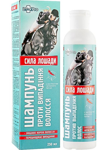 С проблемой выпадения волос сталкиваются люди разного пола и возраста. Это происходит по разным причинам. Как следствие неправильного питания, влияние негативных факторов окружающей среды, физическое состояние, прием лекарства, достижение определенного возраста. Утрата прядей становится причиной расстройства и даже депрессии, но не стоит отчаиваться. Шампунь «Сила лошади» - средство, укрепляющее корни волос, придающее прядям силы, улучшающее структуру без отягощения, питающее необходимыми компонентами, в том числе минералами и витаминами, препятствующее выпадению. Шампунь улучшает кровоснабжение кожи головы и волосяных луговок, нормализует деятельность сальных желез, придает мягкость и сияние волосам. В состав шампуня входит экстракт красного перца, который оказывает стимулирующее действие на нервные окончания. Как следствие, клетки наполняются кислородом и питательными веществами, пробуждаются «спящие луговицы». Экстракт лопуха способствует стимуляции роста, укреплению корней, борьбе с перхотью, улучшает дыхание кожи и обмен веществ. Органические соединения, присутствующие в экстракте болотного аира, нормализуют работу сальных желез, предупреждают появление жирного блеска, придают волосам ухоженный вид и шелковистость.