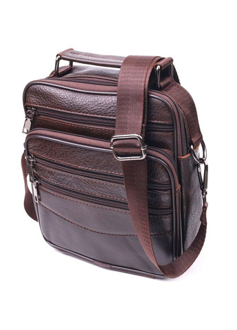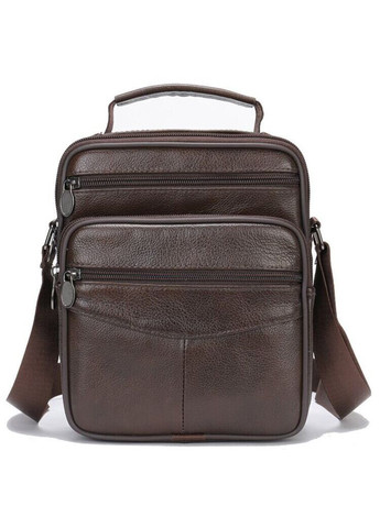 Мужская кожаная сумка через плечо, коричневая кросбоди. Цвет коричневый; Материал: натуральная кожа высокого качества; Размер (ШхВхГ, см): 22,5х18,5х5; Особенности: – основное отделение на молнии; - потайной карман на молнии на задней стенке; - карман на тыльной стороне на молнии; На лицевой стороне: - накладной карман на молнии; - два встроенных кармана на молнии; - регулируемый текстильный ремешок на плече. Качественная мужская сумка из натуральной кожи. Изделие выполнено из зернистой кожи коричневого цвета. Внутри аксессуара плотная текстильная подкладка коричневого цвета. Сумка станет вашим идеальным вариантом на каждый день. Модель очень удобная. Классический дизайн никогда не выйдет из моды. Такая сумка подойдет под любые вещи из вашего гардероба. Модель дополнена качественной фурнитурой в дизайн изделия. Изготовленная из натуральной кожи, эта кросс боди сумка через мужское плечо обеспечивает долговечность и износостойкость. Идеальна как для повседневного использования, так и для деловых встреч. Мужская сумка кросс боди имеет удобный регулируемый ремень, позволяющий носить ее через плечо. Если вам нужна сумка кросс боди натуральная кожа мужская, сочетающая стиль и практичность, эта модель станет отличным выбором. Среди наших вариантов также мужская сумка cross body в стильном коричневом цвете. Сумка месенджер мужская коричневая для деловых людей или мужской коричневый мессенджер – идеальные решения для тех, кто ценит качество и функциональность. Выбирайте мессенджер через мужское плечо или сумку кросс-боди кожаную через плечо для максимального комфорта и организованности в повседневной жизни.