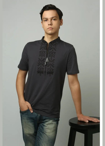 Красивая мужская вышитая футболка. Воротник стойка, регулируется завязками.