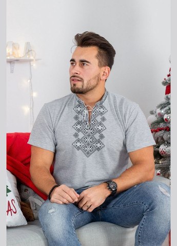Цвет Серый / Материал Хлопок, Полиэстер / Фасон С коротким рукавом / Узор Украинская символика / Стиль Повседневный