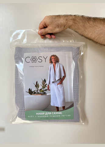 Набор подарочный Банный для мужчин Килт + банное полотенце в zip пакете с ручкой COSY для бани/сауни, вафельный на липучке Серый. Описание: Набор COSY – это идеальный подарок для мужчин, которые ценят комфорт и стиль. Состоит из вафельного килта (парео) и полотенца, оба выполнены в светло-сером цвете, из ткани высокого качества из Турции. Характеристики: Килт (парео): Материал: 100% хлопок, Турция Плотность: 255 г/м2 Цвет: светло-серый Размеры: L (подходить на размеры S-L), XL (подходить на размеры L-2XL) С регулируемой липучкой и карманом Полотенце: Материал: 100% хлопок, Турция Плотность: 230 г/м2 Цвет: светло-серый Размер: 70*140 см Преимущества: Килт (парео): Регулируемая липучка для удобной фиксации Карман для хранения необходимых речей Натуральная вафельная ткань для высокой гигроскопичности и гипоаллергенности Полотенце: Высокая гигроскопичность для эффективного впитывания влаги Нежная массирующая текстура для приятного ощущения на коже. Рекомендации по уходу: Стирать в холодной воде (при температуре не выше 40°С), отжим только на малых оборотах 400. Не использовать отбеливатели. Естественная сушка. Рекомендуется немного растянуть изделие во время сушки. Гладить при высоких температурах до 200°С (режим хлопка) с паром.