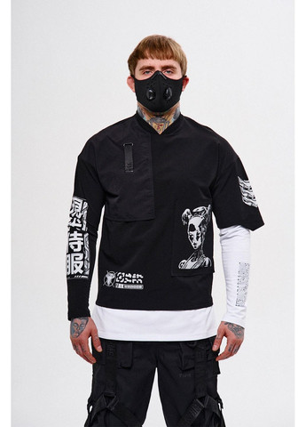 Основная ткань: 90% нейлон, 10% эластан. Вставки: 80% коттон, 20% полиэстер. Особенности материалов и фурнитуры: Основная ткань - эластичная, гладкая на ощупь, хорошо прилегает к телу, устойчива к сминанию и быстро высыхает. Вставки из белого коттона - мягкие, с матовой текстурой, добавляют контраста и структуры изделию. Материалы выносливые, сохраняют форму при интенсивном использовании. Ключевые особенности модели: Оверсайз лонгслив Такеша 2.0, созданный в стиле киберпанк с акцентом на многослойность и функциональность. На правой части - вертикально закрепленная накладка из плащевки, в которую встроена ременная лента с полукольцом для крепления карабинов, наушников или подсумков (брелок в комплект не входит). Слева - накладка с принтом с изображением девушки-дроида. Левый рукав - белый с черным принтом в виде микросхем, правый - черный с белым вертикальным принтом. На спине - фирменные иероглифы, на левом рукаве - накладка с принтом, имитирующим экзоскелет. Внизу изделия - принт в стиле киберпанк и имитация подшитой белой футболки. Модификация культовой модели из предыдущих коллекций - для тех, кто помнит истоки, но движется дальше. Рекомендации по уходу: Машинная стирка при максимальной температуре 30 ºC с коротким циклом отжима. Не использовать щелочные средства или отбеливатель. Можно сушить в сушилке при низкой температуре. Химчистка запрещена.