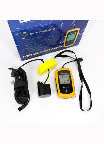 Данная модель рассчитана практически для всех видов рыбалки, то есть рыбалка с берега, лодки или же зимняя рыбалка. Благодаря небольшим размерам, эхолот легко умещается в руке, его можно носить на шее (ремешок включен в комплект) или в кармане. Эта модель может отображать наличие рыбы и рельеф дна. Одновременно функциональная и бюджетная модель, которую можно применять как зимой так и летом. Характеристики: Тип: Эхолоты Тип дисплея: Монохромный Подсветка дисплея: Есть Тип датчика: Проводной Максимальная глубина эхолокации: 100 м Углы обзора: 45° Питание: 4 х ААА Функции: Определение рыбы Материал: ABS пластик Тип крепления: Портативный Водонепроницаемость: IPX4 Возможность применения зимой: Есть Рабочая температура: -20°C - + 70°C Особенности: Быстросъемное крепление Длина кабеля: 7.5 м Регулируемая чувствительность эхолокации Отображение рыбы на шкале глубины Определение типов дна Габариты: 120 x 30 мм Вес: 633 г Цвет: черно-желтый