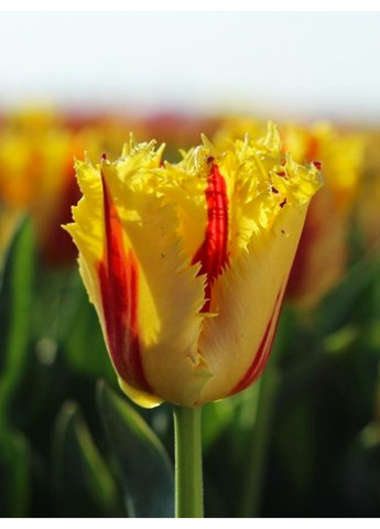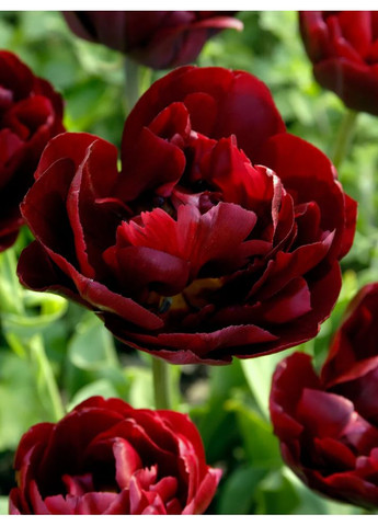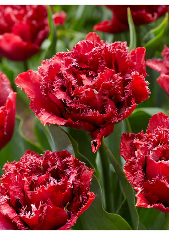 Окруженный тюльпан Barbados – яркий, смелый, драматический – именно эти слова лучше всего описывают этого прекрасного представителя из семьи тюльпанов. Он не просто поражает, а буквально очаровывает своим неповторимым внешним видом: насыщенно-красные, а на солнце малиновые лепестки густо рассеченные, с бахромой, которая придает невероятной фактурности каждому бутону. Выглядит так, будто его украсили бархатным кружевом. Это экзотический тюльпан с цветами, которые увидит каждый, кто войдет в ваш сад. Взрослое растение обычно вырастает до 45-50 см, имеет сильный стебель, способный выдержать объемный цветок даже в непогоду. Зацветает внутри весны и держит цвет долго, не теряя ни формы, ни цвета. Прекрасно подходит как для клумб, так и для весенних букетов, где выглядит особенно эффектно рядом с белыми или желтыми тюльпанами. Цветы, появляющиеся в течение нескольких недель весной, прекрасно выделяются на фоне классических светло-зеленых листьев. А вдобавок ко всему, аромат, который чувствуется далеко за пределами садового участка. Идеально подходит для посадки на любом участке вашей клумбы, в горшках или при бордюрах – попробуйте добавить в свою коллекцию этого красавца – и мы гарантируем – вы не сможете остановиться и захотите еще несколько луковиц! Окруженные (торочковатые) тюльпаны – это новинка среди семьи тюльпанов, на которую просто невозможно не обратить внимание. Этой эффектности им придают игловидные колючки на лепестках, чем-то напоминающие бахрому или морозные кристаллы на окне зимой. Они достаточно устойчивы к разнообразным погодным условиям и характеризуются длительным декоративным цветением, а потому для тех, кто хочет экзотической красоты без особого труда – это идеальный вариант. Идеальные условия для выращивания: высаживать луковицы тюльпанов лучше всего осенью, ориентировочно это сентябрь – начало октября. Глубина посадки – примерно 15–20 см (от основания луковицы), а для долговечных сортов – до 30 см. Расстояние между растениями – 10–15 см. В каждую лунку следует добавить горсть компоста или специального удобрения для луковиц – это поможет молодым корешкам быстрее прижиться. Сажайте верхушкой вверх, а если не уверены — боком: природа сама разберется. Тюльпаны любят солнце и легкую, хорошо дренированную почву. Хуже всего, что может с ними произойти, это влажный участок: там луковицы быстро загнивают. Поэтому выбирайте место, где не застаивается вода, и где растения получат не менее 6 часов солнца в день. После цветения не спешите обрезать листья – именно они накапливают питательные вещества для новых луковиц. Удалите только цветоносы, чтобы растение не тратило силы на семена. Листья должны созреть в течение 6 недель. Подпитывайте весной или осенью удобрением с низким содержанием азота, компостом или перепревшим навозом – тюльпаны отблагодарят за это щедрым цветением.
