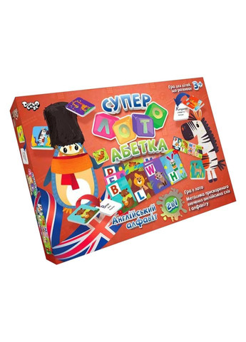 Интересная настольная игра. Правила игры схожи с классическим лото, только на фишках и карточках вместо цифр изображены буквы. Цель игры – первым заполнить все поля на карточке соответствующими фишками. Комплектация: Фишки-буквы – 40 шт., карточки – 10 шт., мешочек – 1