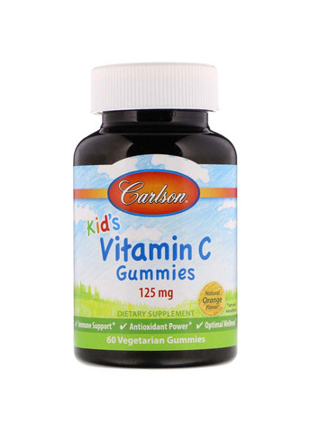 Витамин С для детей с натуральным апельсиновым вкусом, 125 мг, Kid's Vitamin C Gummies, Natural Orange Flavor, 125 mg, Carlson Labs в жевательной форме удобен для применения детям.Содержит.