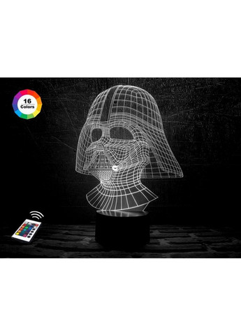 Отправка в течении 1-2 рабочих дней. -какого интерьера. Простое управление. Цвет свечения сменяется нажатием кнопки на корпусе, а также с помощью пульта дистанционного управления. Есть режим автоматического переключения цветов и возможность регулировать яркость подсветки ночника. Безопасность. Светильник не нагревается, нет запаха. Работа от батарей и сети. 3D светильник "Дарт Вейдер" может работать от сети, компьютера или power-банка, а так же от батареек (микропальчиковые 3 шт) Идут В КОМПЛЕКТЕ. Управление пультом: Направьте пульт в сторону базы. Нажмите ON – чтобы включить, OFF – для отключения лампы. Яркость свечения регулируется с помощью кнопок со стрелками вверх/вниз. Чтобы выбрать цвет свечения, нажмите кнопку соответствующего цвета. FLASH – изменение цвета по порядку. STROBE – изменение цвета в случайном порядке. FADE – цвета изменяются с эффектом затухания. SMOOTH – плавное изменение цвета. Вам понравилось несколько дизайнов 3D светильников и не знаете какой выбрать? Возможно, вашему ребенку понравился другой мультяшный герой. Вы изменили интерьер в вашем помещении? Не обязательно покупать новую плошку! ; Уникальной особенностью 3D ламп является то, что изображения в нем съемны. В нашем магазине представлен большой ассортимент сменных пластин. Достаточно заказать у нас дополнительное изображение – и у Вас новый 3D плошка! Характеристики: Цвет света: 16 цветов свечения; Материал: акрил, пластик; Размер: 25х14 см; Возможность: 5 Вт; Комплектация: подарочная упаковка, корпус, плоская пластина (УВЕЛИЧЕННОЕ ИЗОБРАЖЕНИЕ), пульт ДК, USB - кабель 1.5 м, сетевой адаптер, батарейки (3ААА), инструкция на рус. языке; Гарантия: 12 месяцев; Ресурс лампы: до 50 000 часов работы МАТЕРИАЛИ НЕ МЕСТАТЬ ВРОЧКИ! НЕ НАГРЕВАЕТСЯ! БЕЗОПАСНО ДЛЯ ДЕТЕЙ! Вся продукцияторговой марки3DTOYSLAMPпрошла тщательную проверку на качество! Состояние: Новое; Тип крепежа: на поверхность; Комплектация: корпус, акриловая пластина, шнур USB –1.5 м, сетевой адаптер, инструкция на русском языке; Тип: 3D-светильник; Потребление, Вт/час: 0.5; Гарантия: 6 месяцев; Тип источника света: светодиодные (LED); Мощность, Вт.: 5; Дополнительные характеристики: 7 цветов свечения (теплый белый, зеленый, синий, красный, фиолетовый, голубой, желтый); Выключатель: сенсорный, корпус; Материал: пластик; Питание: От сети, компьютера, Power Bank, прикуривателя в автомобиле, 3хААА (3 микропальчиковые батареи); Страна производитель товара: Китай; Размер: 250х180х87 мм;