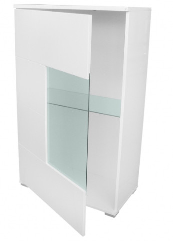 Очень элегантный и красивый шкаф для книг, модель UH37KD. Этот шкаф изготовлен из качественного материала МДФ (это плитный материал, который получают методом сухого прессования мелкодисперсной древесной стружки при высоком давлении и температуре) с полимерным покрытием белого цвета, ножки металлические, невысокие, фигурные, дверца со стеклянной вставкой, полка внутри также стеклянная. Это шкаф, который будет служить вам «хранилищем» для книг, газет, журналов, старых семейных альбомов и так далее. Высота шкафа 108 см, его можно поставить в угол комнаты, там он не займет много места, можно и к центровой стене. Если собираетесь приобрести этот шкаф, то учтите, его необычный внешний вид подойдет не к каждому интерьеру! Например, в классическом строгом помещении такая мебель будет смотреться нелепо, а вот в комнатах современного дизайна – как никогда кстати!
