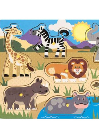 Эта деревянная рамка - вкладыш включает в себя семь африканских животных, каждая фигура имеет специальную ручку, ручки съемных частей игрушки предназначены облегчить сбор пазла и развить моторику ручек, сама головоломка способствует развитию логического мышления.