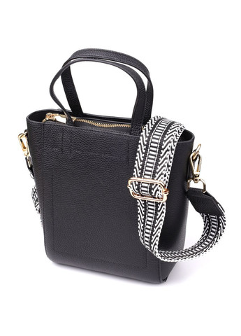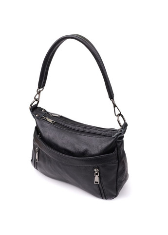 Цвет: черный; Материал: натуральная кожа; Размер (ШхВхГ, см): 22х17,5х7,5см; Длина ремешка: 125 см (регулируется в меньшую сторону ); Страна производитель: Китай; Бренд: Vintage. Особенности: - 1 основное отделение, что закрывается на молнию; - внутри: потайной карман на молнии и карман открытого типа; - фурнитура цвета серебра; - съемный текстильный ремень. Оригинальная и стильная черная сумка из натуральной кожи — идеальный аксессуар для повседневного использования и деловых образов. Модель оснащена одним основным отделением, которое закрывается на молнию, обеспечивая надежное хранение ваших вещей. Внутри находятся два удобных кармана: потайной на молнии — для документов или ценных мелочей, и открытый — для телефона, ключей или других необходимых предметов. Сдержанный и элегантный чёрный цвет придаёт сумке строгий и современный вид, а серебристая фурнитура добавляет благородный акцент. Съемный текстильный ремень позволяет комфортно носить сумку через плечо или на плече, делая её подходящей как для активного городского ритма, так и для более спокойной обстановки. Благодаря качественной натуральной коже, продуманной конструкции и лаконичному дизайну, эта черная сумка станет вашим надежным спутником в любых ситуациях.