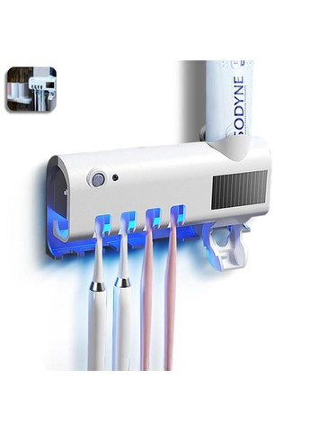 Имеет сразу несколько функций: держатель для зубной щетки, ультрафиолетовый стерилизатор (дезинфектор) и механический дозатор зубной пасты.
