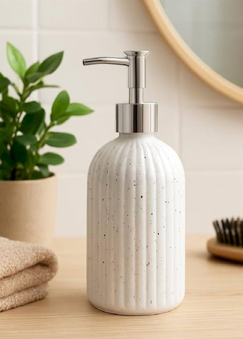 Диспенсер стеклянный матовый для жидкого мыла 440 мл. Диспенсер из матового стекла объёмом 440 мл с оригинальным дизайном в виде белых брызг предназначен для удобного и гигиеничного использования жидкого мыла, моющих средств для посуды или антибактериальных растворов. Не рекомендуется использовать его для кремов, густых лосьонов, твёрдого мыла или моющих средств с гранулами, а также для жидких скрабов и сильно пенящихся составов. Чтобы обеспечить корректную работу устройства, избегайте смешивания жидкого мыла с водой в резервуаре. Этот диспенсер также идеально подходит для использования с экстрактами трав в сочетании с мылом.