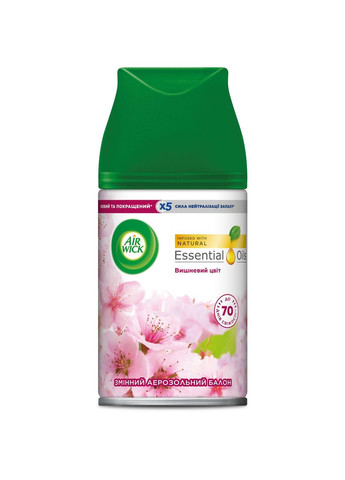 Сменный баллон для автоматического освежителя воздуха Air Wick (Эйр Возраст) Freshmatic Pure Вишневый цвет нейтрализует неприятные запахи, создавая в помещении ощущение продолжительной свежести. Этот сменный баллон предназначен для автоматических распылителей Air Wick Freshmatic. Основные преимущества: надежно устраняет неприятные запахи имеет легкий и чистый аромат сухое распыление – освежитель не имеет в своем составе воды, поэтому гарантирован приятный свежий аромат без лишней влаги Способ применения: перед вставкой аэрозоля проверьте, выключен ли диспенсер. не направляйте в лицо при включении или установке интервала распыления после включения распыления начнется автоматически через 15 сек. Меры предосторожности: прочитать внимательно этикетку перед использованием. Хранить в недоступном для детей и животных месте. Использовать только по прямому назначению в хорошо проветриваемых помещениях. Баллон находится под давлением. При нагревании может быть разрыв баллона. Предотвращать воздействие прямых солнечных лучей и нагрев выше 50ºС. Огнеопасно! Не распыляйте вблизи открытого огня, раскаленных предметов, источников тепла или включенного электрооборудования. Не курить. Не прокалывать и не сжигать даже после использования. Не разбирать и не давать детям. При попадании в глаза аккуратно промыть водой в течение нескольких минут. Удалить контактные линзы при наличии, продолжить промывку. При обращении к врачу иметь при себе упаковку или этикетку. Характеристики Объем: 250 мл Производитель: Air Wick, Великобритания.
