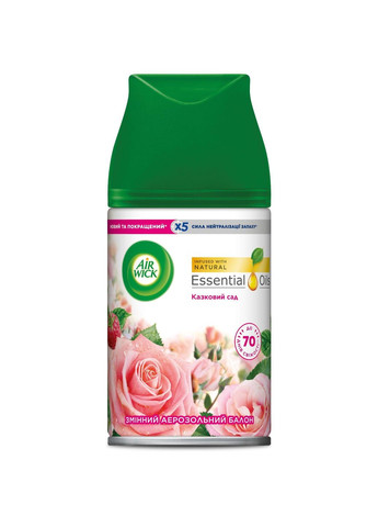 Сменный баллон для автоматического освежителя воздуха Air Wick (Эйр Вик) Freshmatic Life Scents Сказочный сад нейтрализует неприятные запахи, создавая в помещении ощущение длительной свежести. Этот сменный баллон предназначен для автоматических распылителей Air Wick Freshmatic. Сказочный сад объединяет три оригинальных компонента (магия зефира, малина и роза), которые дополняют друг друга и превращают обычный освежитель в совершенную композицию, как настоящие изысканные духи. Основные преимущества: надежно устраняет неприятные запахи имеет легкий и чистый аромат сухое распыление - освежитель не имеет в своем составе воды, поэтому гарантирован приятный свежий аромат без излишней влаги Способ применения: перед тем, как вставить аэрозоль, проверьте, что диспенсер выключен не направляйте в лицо при включении или при установке интервала распыления после включения распыление начнется автоматически через 15 сек Меры предосторожности: прочитать внимательно этикетку перед использованием. Хранить в недоступном для детей и животных месте. Использовать только по прямому назначению в хорошо проветриваемых помещениях. Баллон находится под давлением. При нагревании возможен разрыв баллона. Предохранять от воздействия прямых солнечных лучей и нагревания выше 50ºС. Огнеопасно! Не распылять вблизи открытого огня, раскаленных предметов, источников тепла или включенного электрооборудования. Не курить. Не прокалывать и не сжигать даже после использования. Не разбирать и не давать детям. При попадании в глаза промыть осторожно водой в течение нескольких минут. Удалить контактные линзы при наличии, продолжить промывку. При обращении к врачу иметь при себе упаковку или этикетку. Характеристики Объем: 250 мл Производитель: Air Wick, Великобритания.