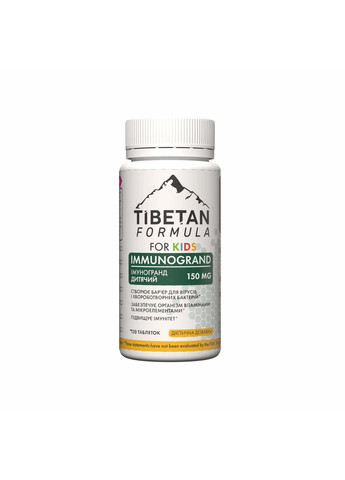 - поддержка иммунной системы* - нормализация обмена веществ* - насыщение витаминами и микроэлементами* Натуральная формула добавки включает целебные растения, обладающие свойствами укрепления иммунной защиты детского организма, активизации кровообращения, улучшения обмена веществ.* Эфирное масло тысячелистника, золототысячник, можжевельник издавна использовались за противовоспалительные свойства.* Астрагал способствует улучшению кровообращения и насыщению внутренних органов кислородом.* Калина, облепиха, шиповник, изюм – отличные источники витамина С, А, Е, а также микроэлементов, которые помогают работе всех систем организма.* Диетическая добавка не является лекарственным средством. Состав: Размер порции - 3 таблетки, 1 таблетка – 0,12 г Herbal Blend (аир, астрагал, изюм, пажитник сенной, тысячелистник, заманиха высокая, золототысячник, калина, крапива, облепиха, розмарин, спаржа лекарственная, чабрец, шиповник, можжевельник). Другие ингредиенты: микрокристаллическая целлюлоза, крахмал, магния стеарат, диоксид кремния. Рекомендованное применение В качестве пищевой добавки принимать по три (3) таблетки до еды или по назначению врача. Индивидуальные результаты могут отличаться. Предупреждения Перед использованием проконсультируйтесь с врачом, если вы беременны, кормите грудью, принимаете лекарства, страдаете каким-либо заболеванием или планируете медицинскую процедуру. Храните этот продукт в недоступном для детей месте. Не является лекарственным препаратом. Предлагаемые схемы лечения и профилактики самых распространенных состояний от валеологов Тибетской формулы ( Дуйко А.А.) Изготовлено в Украине: Тибетская формула ТУ У 10.8-39455829-001-2013 Качество гарантируем !!!
