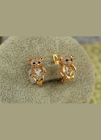 Серьги детские Xuping Jewelry мишки с танцующим фианитом золотистые диаметр 1,3 см ширина 8 мм. Застежка английская
