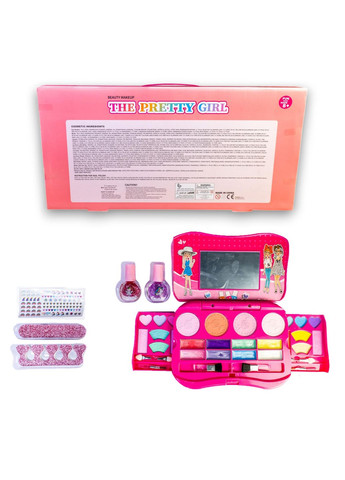 Стильный туалетный столик 3-в-1- туалетный столик, чемоданчик, компактная косметичка Компактный - идеально подходит для путешествий! В комплекте с безопасным зеркалом, прекрасно подходит для развития мелкой моторики, имеет подвижные и съемные элементы, щетка, 3 кольца, парфюмерия, помада 2 и лак для ногтей 3, ожерелье 1 и браслеты 2), безопасность, гарантированная сертификатом EN, размеры: 42 х 20,5 х 54,5 весит менее 1 кг Точно как настоящий! Ее собственный туалетный столик может стать одной из любимых игрушек на долгое время.